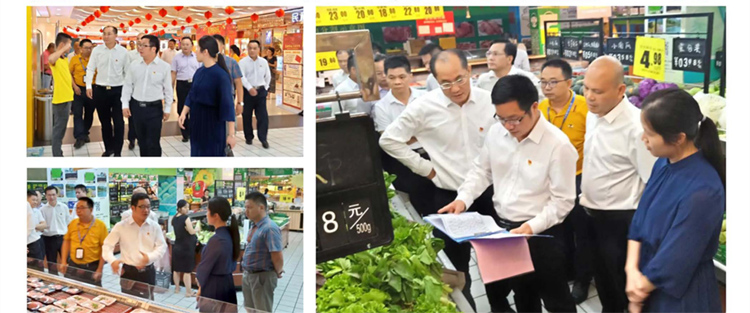 发布日期:2019年09月27日9月27日下午,怀集县委书记黎晓华、县委副书记、县长陈树源等领导一行人在县市场监督管理局的陪同下,来到惠而佳超市步行街店进行节前商品供应和食品安全情况调研和工作指导。在腾业集团副总经理、超市总经理李志雯女士的陪同下,检查了超市的食品安全工作,并详细询问了肉类产品节前市场供应、商品价格、商品质量、食品进货查验制度、检疫合格制度的落实情况以及经营者主体资格、合法经营状况等情况,之后在蔬菜区域详细了解蔬菜农残检测相关情况。