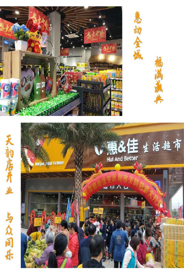 发布日期:2020年01月10日经过连月来的紧张准备,2020年1月10日,位于怀城悦景康城·天韵西门旁的惠而佳连锁超市天韵店在欢呼和礼炮声中盛装开业。作为惠而佳超市第十二分店,天韵店开业,与众同乐,惠动全城,福满盛典。