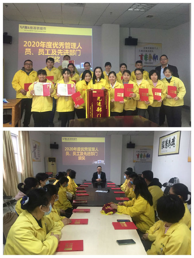 发布日期:2021年02月09日为表彰先进,提升归属感,进一步激发员工的积极性、主动性与创造性,2021年2月9日,惠而佳超市对2020年表现先进的部门及优秀的人员进行了表彰。超市副总经理邓志坚先生出席了本次表彰会议。