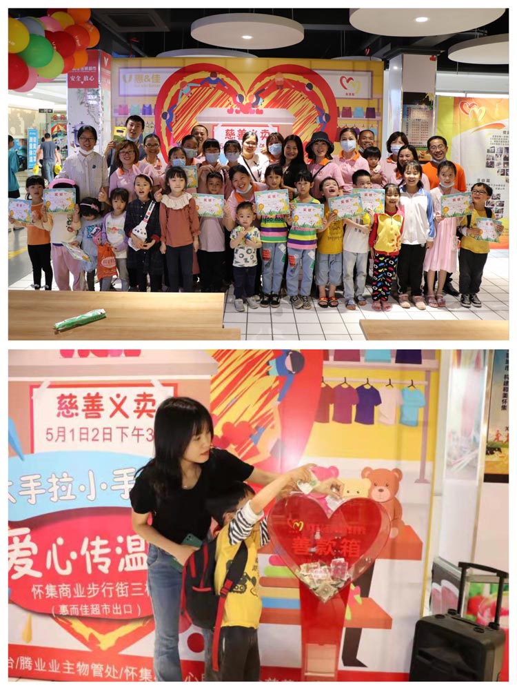发布日期:2021年05月01日奉献一份爱心,带来一缕温馨,呼唤爱心,这个五一,惠而佳超市携手悦家百货、怀集县心连心慈善机构在燕城店三楼出口通道举办“大手拉小手,爱心义卖传温情”义卖活动。