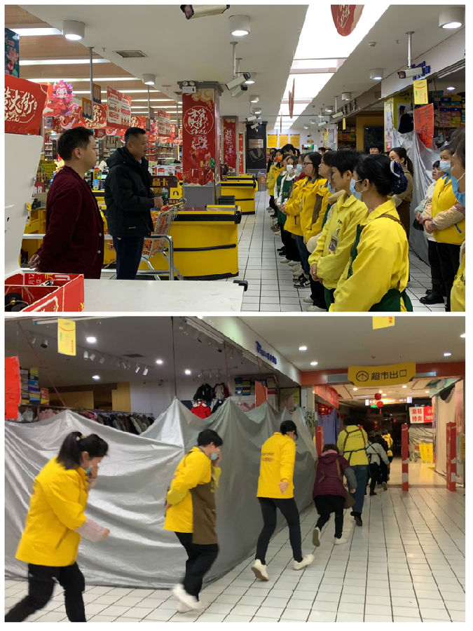 为保证本次活动的顺利开展,演练前超市资产安全部经理何常青先生对演练流程进行了详细安排和周密布署,明确了各部门人员的分工和职责,科学规划了疏散路线。上午8:20分,紧急警报骤然响起,各部门立即按照《消防安全疏散演练方案》的要求,迅速有序地开展疏散演练,员工们“捂住口鼻”“弯腰低头”,在应急小组的指引下按指定逃生路线撤离到安全疏散区域。待人员撤离至安全区域后,各部门主管及时清点疏散人员人数,并将撤离情况及时向总指挥汇报。