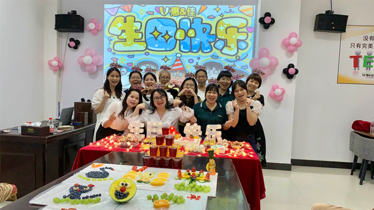 公司一直致力于打造温馨和睦、包容奉献的大家庭,努力营造轻松和谐的工作氛围,让员工在工作之余感受惠而佳大家庭的无限关爱和归属感。每一次精心准备的生日会,都倾注了公司对员工的关怀,以及对员工长久以来努力付出的感谢和肯定。