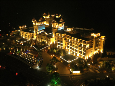 度假邨方圆几十公里范围为生态森林区,林木覆盖面积广,负氧离子含量更高达12万个每立方厘米,拥有得天独厚的原始生态环境资源,使整个景区浴沐在郁郁葱葱的绿色海洋之中,让人心旷神怡,流连忘返。这座隐于南乡乡间村落中的温泉度假邨,让我们看到现代温泉度假的另一种模式,带着深刻的原始况味,让温汤文化回归到天然。