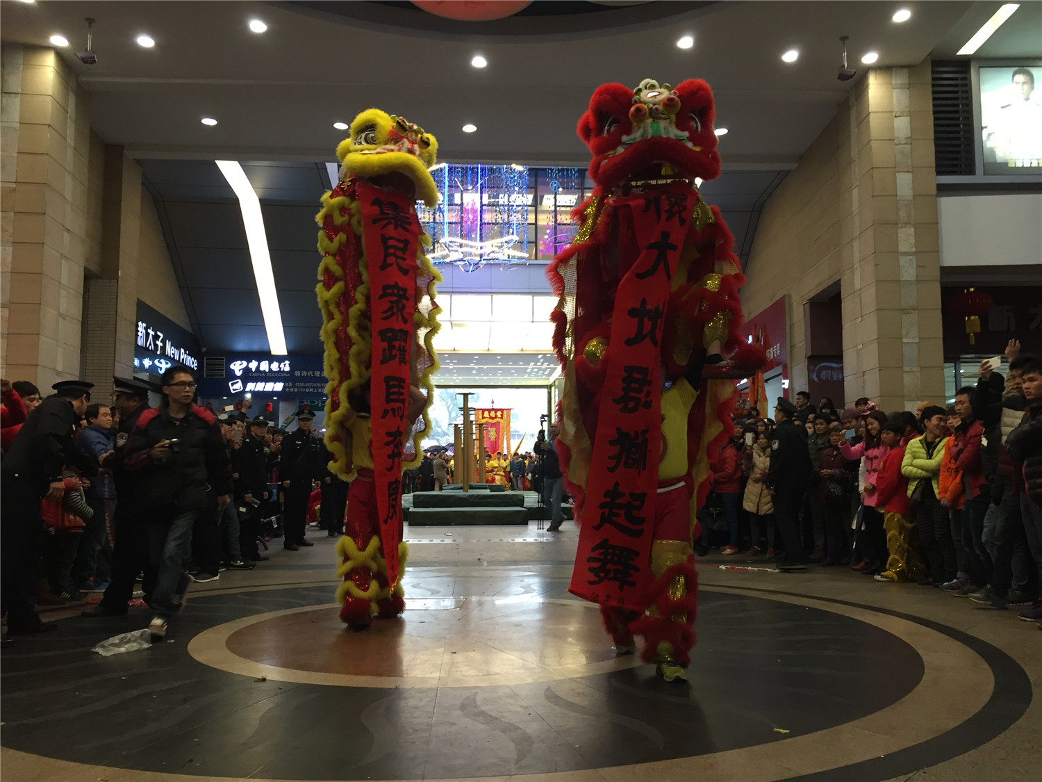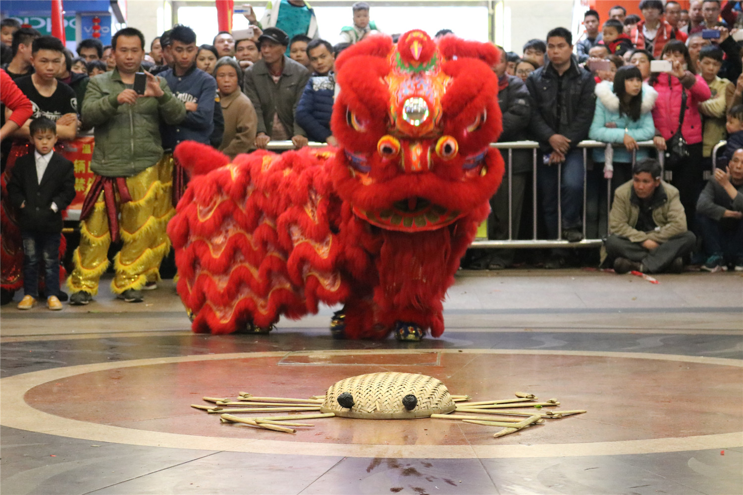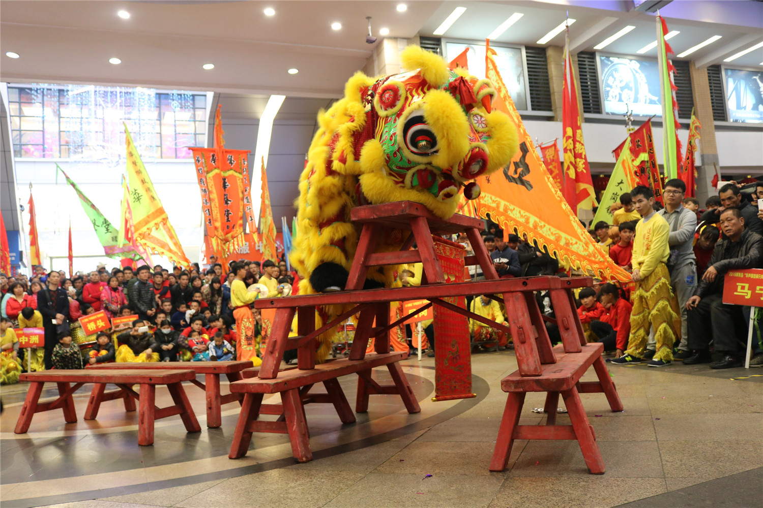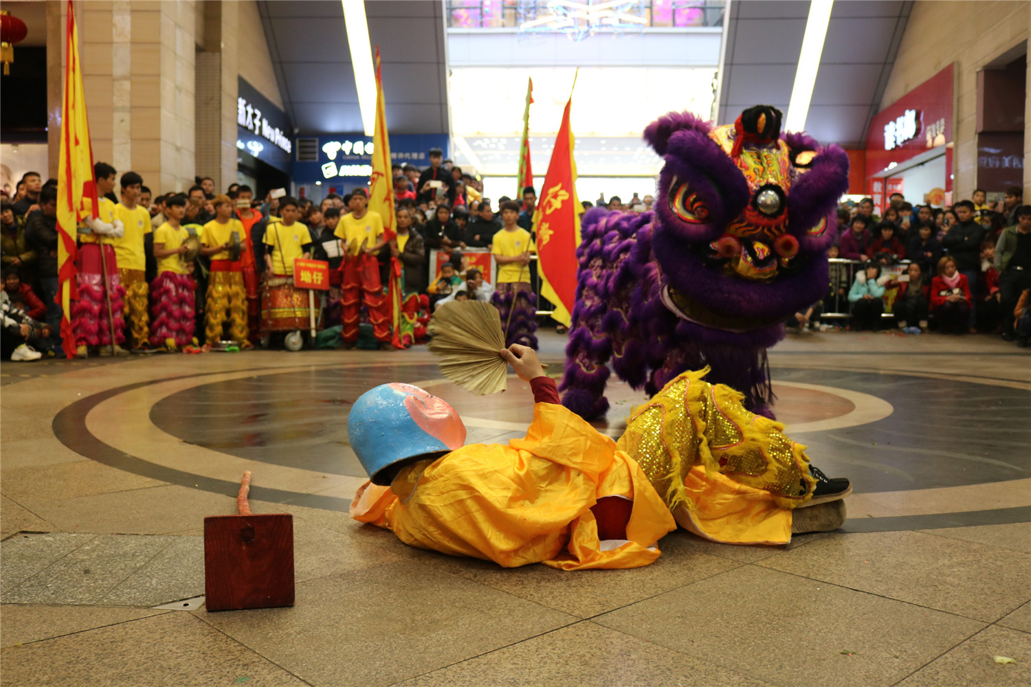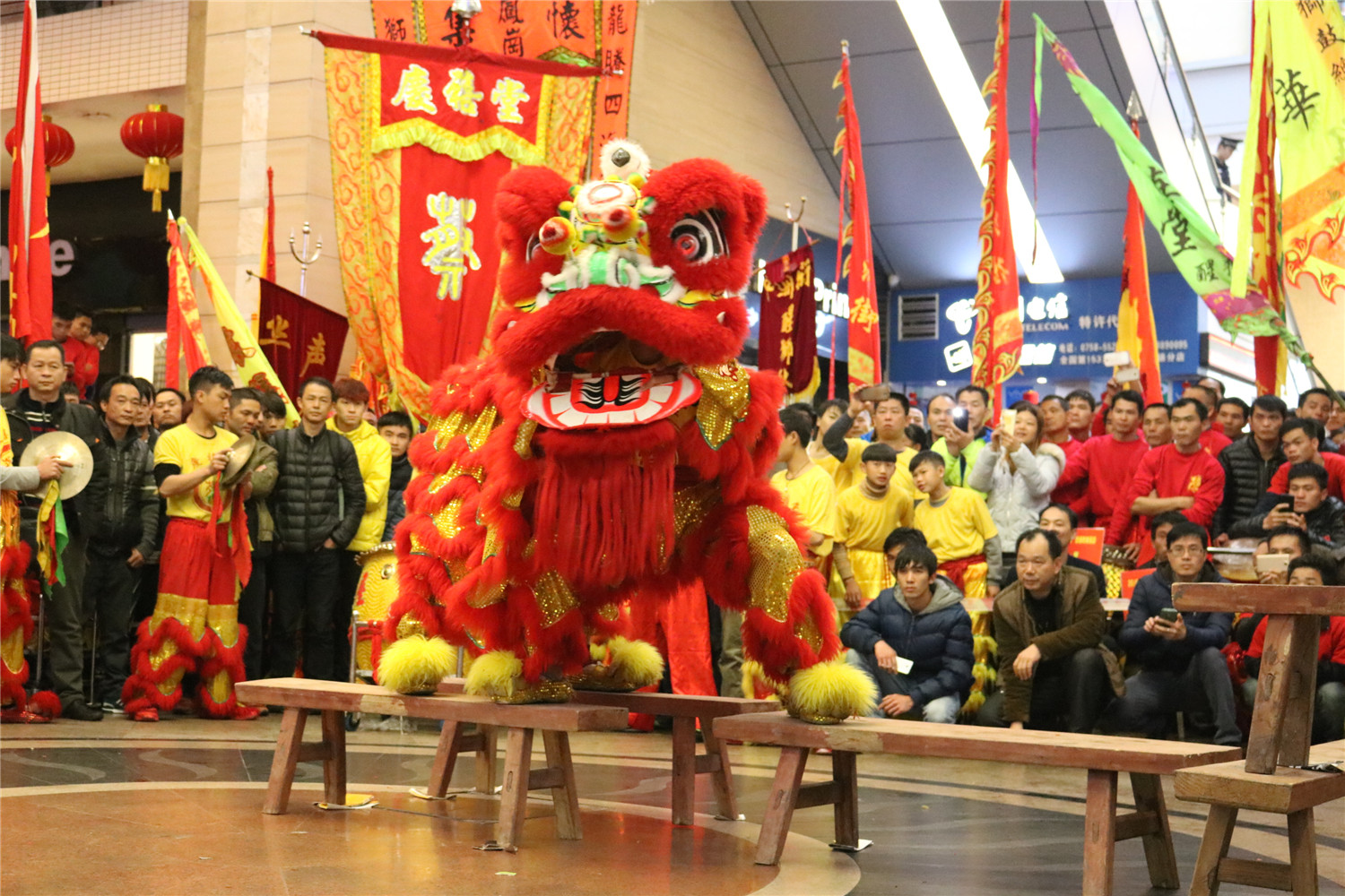 巡游结束,各醒狮代表队陆续回到步行街一楼大堂,开始精彩的醒狮表演赛!