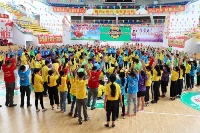 活动的前一天,TA62是学员们聚集在怀集体育馆,布置活动现场,筹备本次活动。活动现场,提前一天挂好了“成长心连心•让爱充满人心”、“相约心连心•你我紧相连”、“把心打开•把爱说出来”、“懂得感恩,是收获幸福的源泉”、“让我们的行动放飞孩子的梦想”“珍惜孩子的每一次成长”的横幅。
