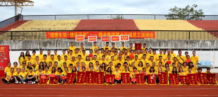 10月18日至11月2日,腾业集团举办了以“健康生活•快乐运动”为主题的第十三届员工运动会。本届运动会是腾业集团连续第13年举行的员工运动会,吸引了腾业集团各公司约200人参加比赛。未能参加比赛的其他员工也纷纷组建起拉拉队到比赛现场为参赛队员加油鼓劲,呐喊助威。公司上下呈现一片热闹、隆重、和谐的比赛气氛。本届运动会共有5支代表队,他们分别是:集团总部、怀集房地产、恒基物业、惠而佳超市、燕城酒店。比赛项目丰富多彩,有羽毛球赛、乒乓球赛、登山赛、篮球赛、拔河赛、8×100米接力赛、副总5×200米接力赛等。在各项赛事中,运动员们发扬了努力拼搏、团结互助的精神,彰显了腾业人的运动精神与活力,更体现了“更快、更高、更强”的奥林匹克精神。在比赛中,各支队伍拿出最好的精神状态和精神风貌竞争,在赛场上的默契配合转化为场下的友谊,比赛中的奋力拼搏转化为工作中的昂扬斗志。充分显示了“健康生活•快乐运动”的主题精神。