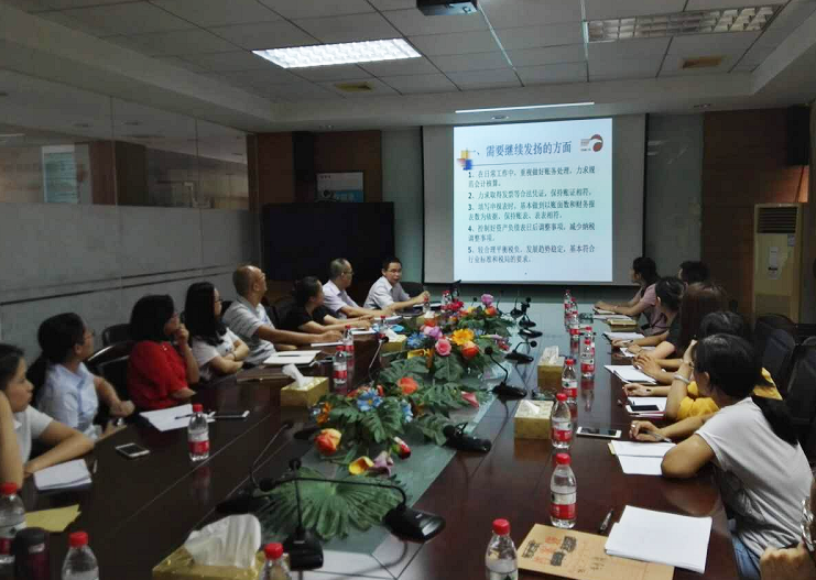 发布日期:2017年06月29日2017年6月29日下午3时,在怀集总部三楼会议室。在腾业集团分管领导指引下,按照工作部署和计划安排,集团财务中心举办了一场年中财税培训,参加此次培训的人员有各公司的财务负责人及相关财务人员20多人。集团财务中心副总监张世孟作为本次培训讲师,热情洋溢地为大家开展了《16年度企业所得税汇算清缴总结——暨相关会计知识培训》的专题培训。