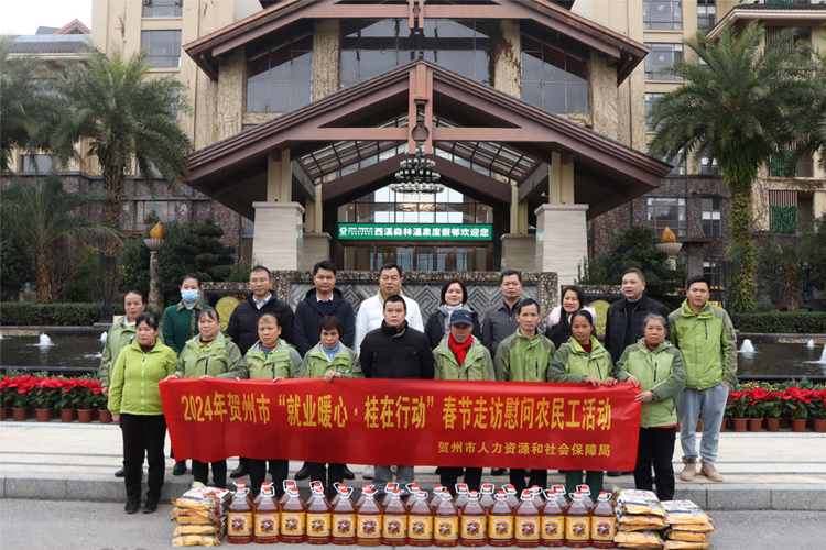 贺州市人社局副局长蒋武艳率队莅临西溪森林温泉度假邨开展“就业暖心·桂在行动”春节走访慰问农民工活动