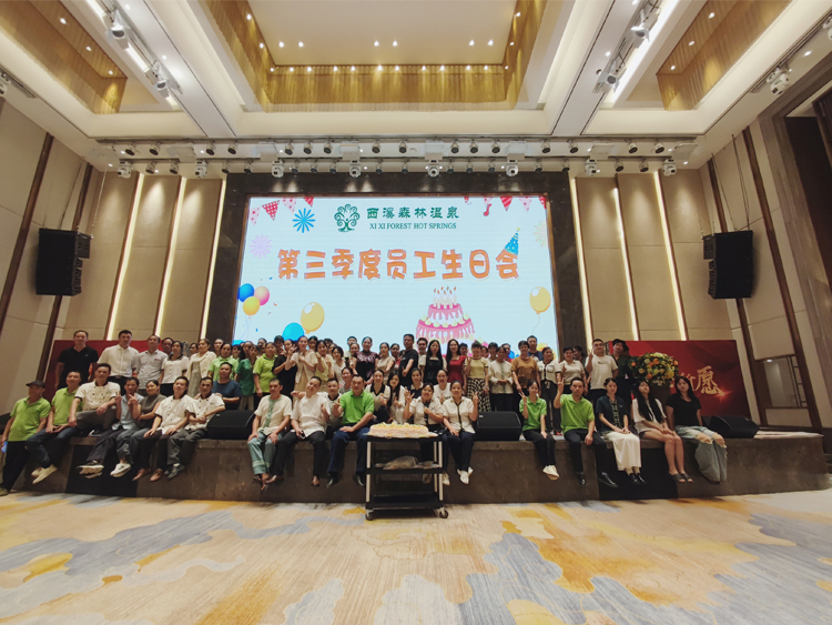 发布日期:2024年09月30日为了增强团队凝聚力,营造和谐温馨的工作氛围,在这个金秋送爽、硕果累累的美好时节,我们迎来了西溪森林温泉度假邨(下称度假邨)第三季度员工生日会的温馨时刻。度假邨于9月30日在大酒店二楼宴会厅成功举办了一场别开生面的生日会,公司领导及第三季度的寿星们共140余人参加。