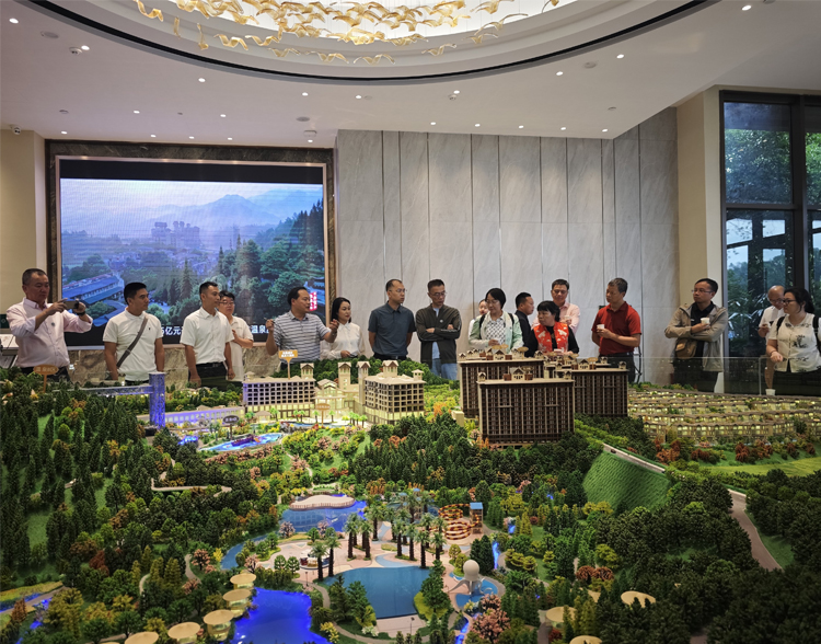 考察组一行参观了悦泉居销售中心沙盘,负责人详细介绍了度假邨的基本概况及近年来在温泉资源开发、健康服务体系建设等方面取得的成就,强调将依托现有资源,打造集休闲度假、健康管理、文化体验于一体的高端大健康文旅综合体。考察组成员认真听取介绍,并结合自身行业背景,就如何提升温泉旅游品质、拓展健康养生产品、加强品牌建设等方面提出宝贵建议。
