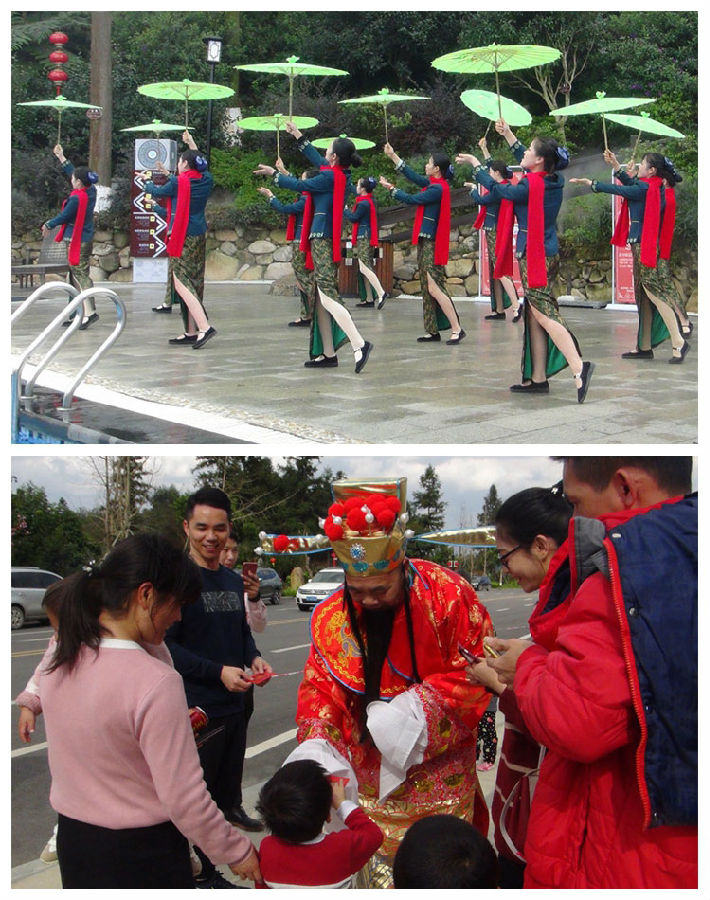 发布日期:2019年02月11日2019年春节黄金周期间贺州市西溪森林温泉度假邨(以下简称度假邨)以“壮乡文化”为主题,融合了“快闪舞蹈”等现代元素,策划了醒狮贺岁、金龙献瑞、壮乡装皇、美食嘉年华、儿童欢乐园、温泉瑶浴等一系列丰富多彩的文化活动,正月初一到初七每天轮番上演,吸引了大批游客前来观赏游玩。