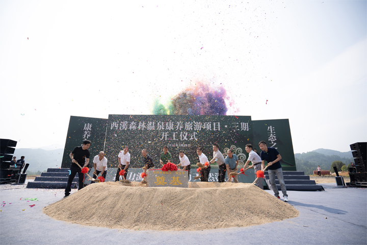 西溪森林温泉康养项目·悦泉居正式奠基开工,徐常委的一声宣布,伴随着施工机械开动鸣笛,各部门领导和各界嘉宾共同为奠基石挥锹培土,标志着西溪森林温泉康养项目·悦泉居的建设正式拉开序幕,现场礼花绽放、掌声齐鸣,一片喜悦景象。