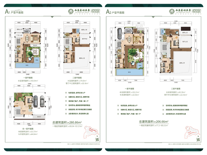 建筑面积约206~381㎡温泉别墅,享庭院、露台高附赠空间,可轻松满足三代同堂的温泉度假养生及居住需求。同时带全屋精装及家具家电,让您归家养生更便捷。