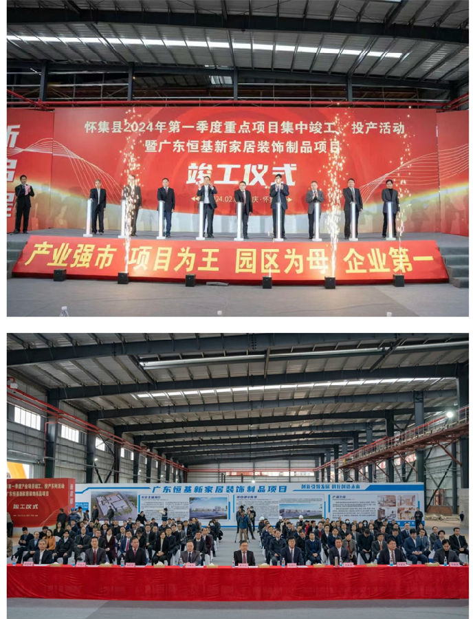 热烈祝贺怀集县2024年第一季度重点项目集中竣工、投产活动暨广东恒基新家居装饰制品项目竣工仪式圆满完成