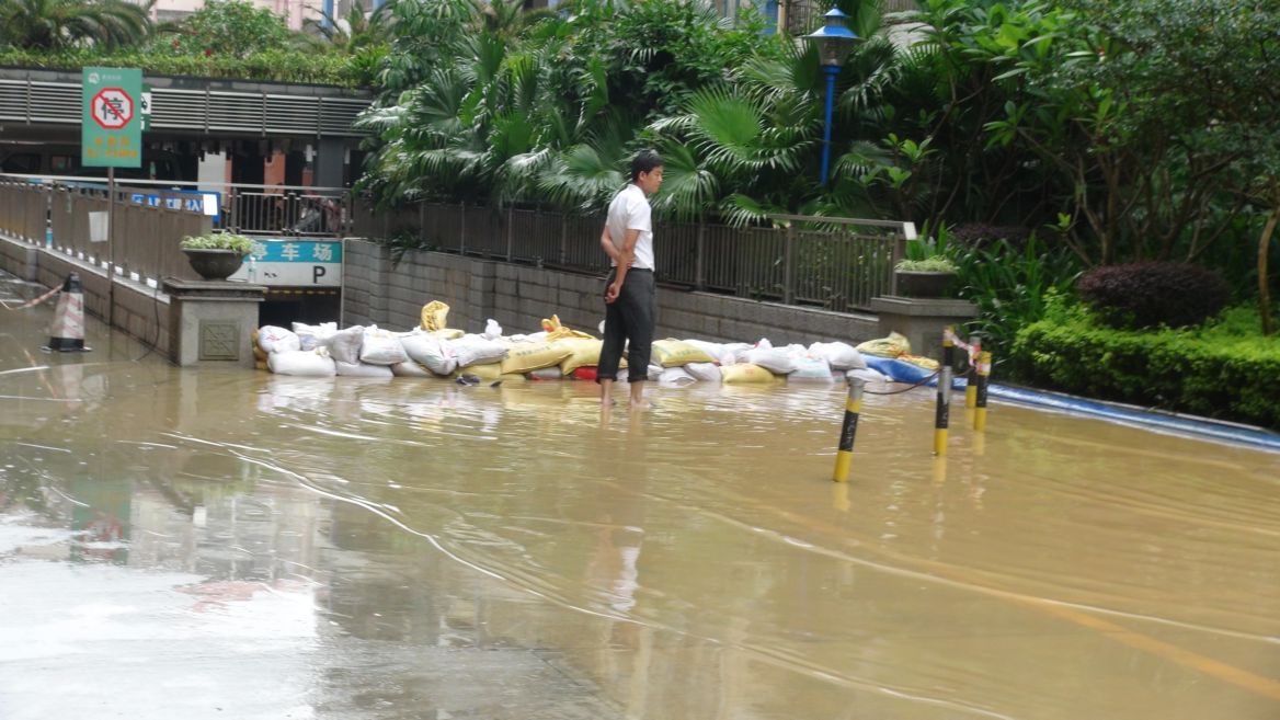 负责坐镇雅豪庭园小区的物业总监黄焕告诉我们,5月23日凌晨3点钟,雅豪庭园管理处和星怡景居管理处的员工分别致电总经办,报告沿江路段的水位正在不断上涨,雅豪庭园的地下车库已经有洪水漫入。