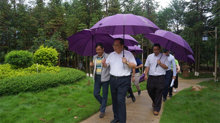 调研过程中,集团总经理李灿荣首先带领调研组参观了别墅区、温泉区、湿地公园等景点,同时就景区未来发展规划和林下经济发展情况作了详细报告。黄显阳对度假邨综合考虑了人文地理、民俗风情、生态环保等多方面因素规划表示赞赏,对大力发展林下经济给予了高度的评价。