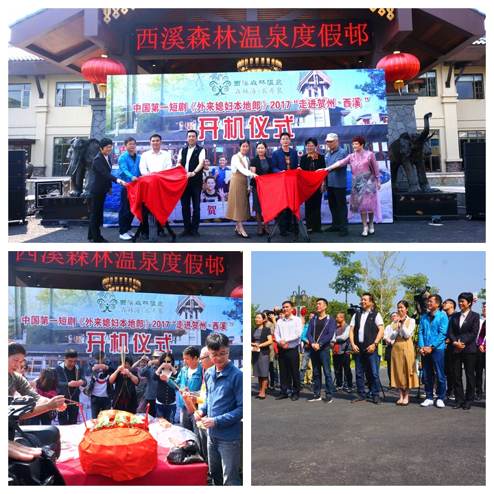 发布日期:2017年10月30日10月30日上午,中国第一短剧《外来媳妇本地郎》在贺州市西溪森林温泉度假邨(以下简称度假邨)隆重举行了“走进贺州•西溪”开机仪式。贺州市委宣传部副部长曾小燕,广东广视传媒有限公司总经理杨德建,贺州西溪森林温泉度假邨董事兼肇庆市鸿大投资管理有限公司董事长张仲斌,广东腾业实业集团副总经理李志雯,设计中心总工程师莫伟亮,度假邨常务副总经理阮鸿秋等出席了开机仪式。