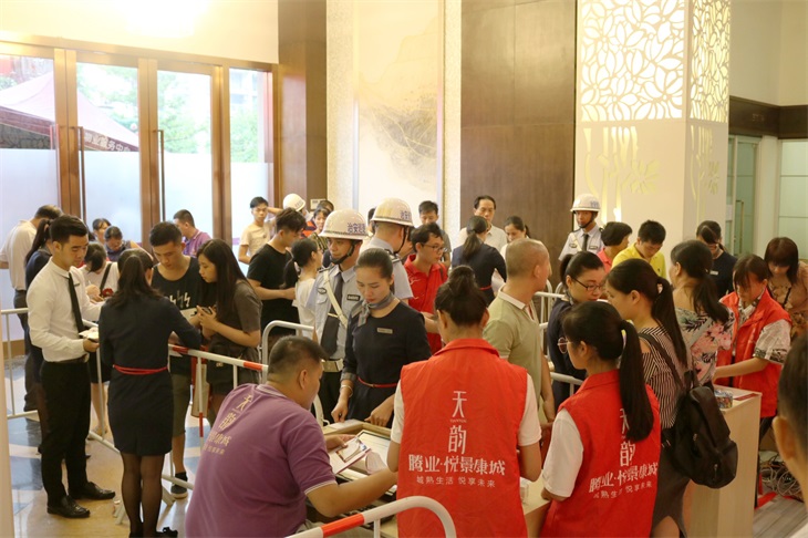 早上室外温度已经很高了,但丝毫抵挡不住客户的热情!早早就有一大批户口来到销售中心门口签到入场。