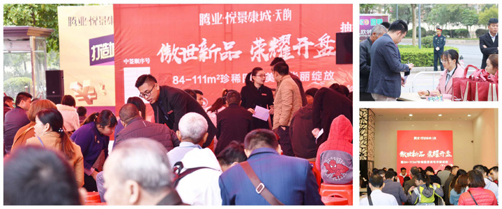 发布日期:2018年11月24日2018年11月24日,寒露微至,湛蓝的天空舞动着雪白的云絮,像在庆祝今天是个好日子。初冬的清晨略显清冷,旭日的晨辉为悦景康城披上了一层金纱,随着悦景康城·天韵B10栋开盘即将开始,客户进场,门庭若市,现场的气温也变得温暖如春。