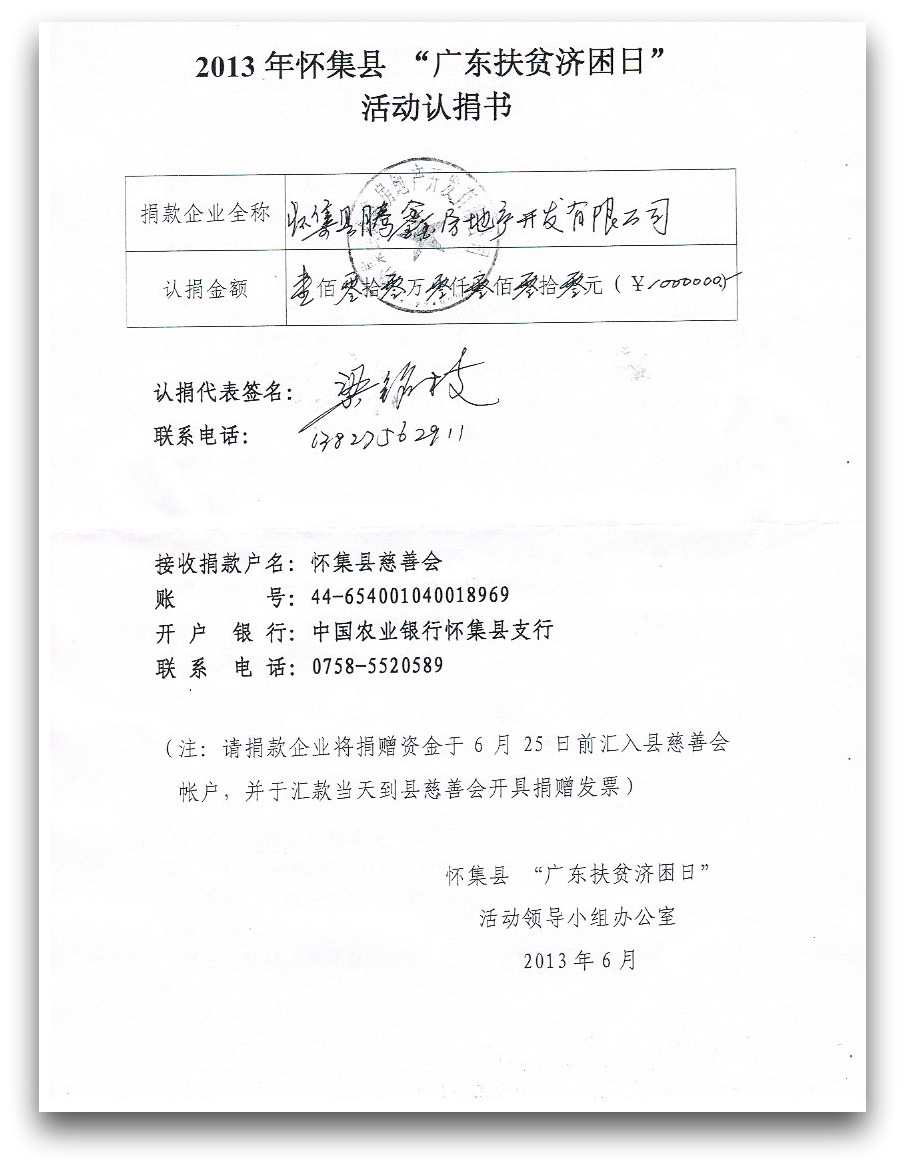 2013年06月18日6月22日,怀集县县委领导在办公室内亲切接见了怀集县各大型民营企业代表,并主持召开“630‘广东省扶贫济困日’怀集县慈善募捐座谈会”。会上,县委领导动情...