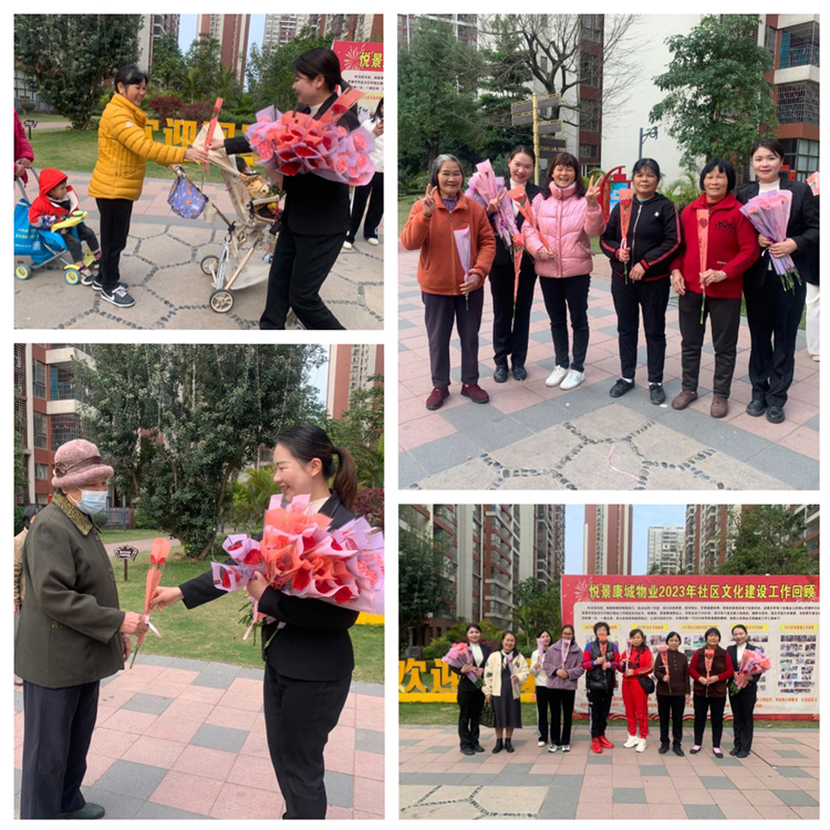 发布日期:2024年03月08日柔情三月、春暖花开,春风轻飞柳、弄花香满衣。在这个春暖花开的日子里,迎来了一年一度的“三八”国际妇女节。为表达对女性业主的关怀与美好祝福,悦景康城物业服务中心开展了“春暖花开·庆三八”妇女节温情献花活动。