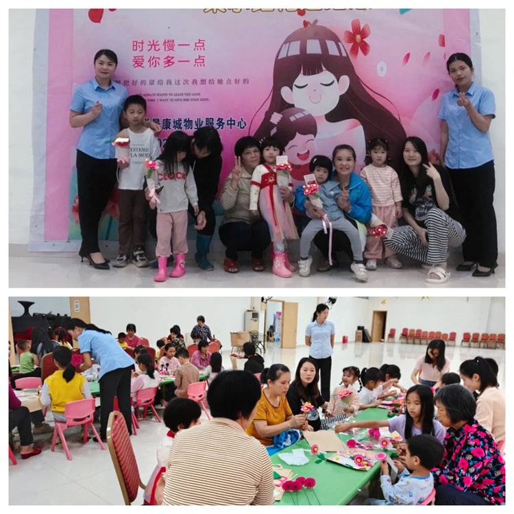 只见大家忙碌而有序地挑选纸张、剪裁形状、粘贴花瓣、装饰花束,不一会儿,一朵朵美丽的手工花便呈现在眼前。有的业主选择了鲜艳的粉色花朵,寓意着母爱的温暖与甜美;有的则选择了淡雅的白色花朵,象征着母爱的纯洁与高尚。 每一朵花都寄托着业主们对母亲深深的祝福和感激之情。
