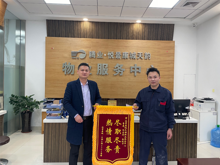 2024年12月10日小区6栋业主送来了一面“热情服务,尽职尽责”的锦旗,送到了天韵物业服务中心常经理与工程部高师傅的手中,背后是一段关于加装减速带的暖心故事。