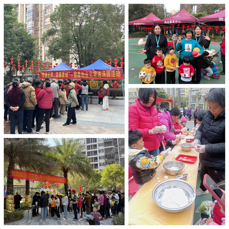 在悦景康城、悦珑郡、威州名城、温莎名园、金佳花园以及星怡景居(包括星豪苑、怡景苑、雅景苑及雅豪居)等项目现场,恒基物业的工作人员早早就准备好了热气腾腾的汤圆,并将这些象征着团团圆圆、幸福美满的美味佳肴,亲手递送到每一位过往的业主手中。业主们纷纷驻足,接过汤圆,脸上洋溢着幸福和满足的笑容,整个现场洋溢着温馨和谐的气氛。