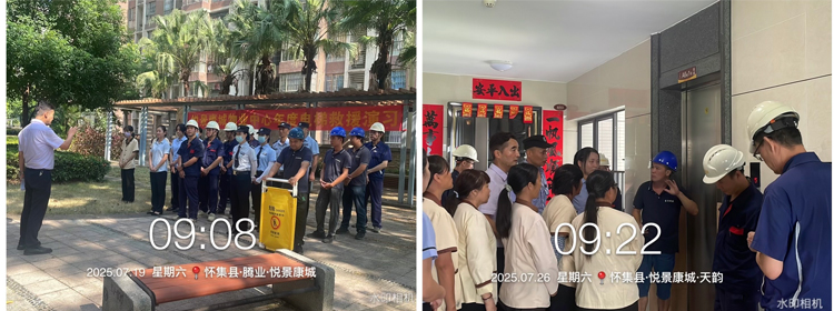 发布日期:2025年07月26日为进一步筑牢各项目安全管理防线,提升电梯突发事故应急处置能力,恒基物业旗下的悦景康城、天韵小区联合广州焱茂机电工程有限公司,于7月19日、26日分别在悦景康城、天韵小区开展年度电梯救援实战演练。