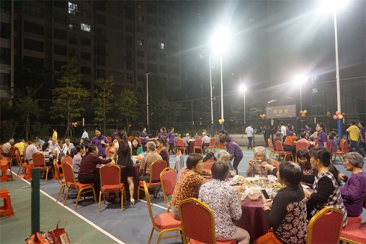 为庆祝重阳佳节,弘扬尊老敬老、爱老助老的优良传统,增加社区的尊老意识和敬老意识,让小区的老人们感受晚年幸福生活和子女的温暖,营造良好的社区氛围,悦景康城物业服务中心于2017年10月27日为小区的老年人举办了一场“一人一个菜,让爱别等待”的大型社区聚餐活动,让老人们在活动中感受子女的关怀与孝心,物业大家庭的温暖。