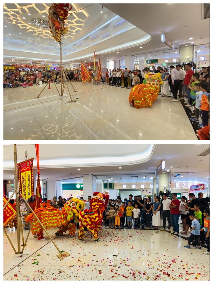 醒狮团队早早就齐聚在步行街二楼中庭,共同庆祝步行街二楼C区重装启幕仪式。伴随着锣鼓和礼炮声响起,两只狮子翻腾舞动,身形矫健敏捷,演绎了一场精彩绝伦的采青表演,其中将操青、惊青、食青、吐青等环节表演得异常精彩,围观群众的掌声、喝彩声不断。随后,两只狮子一起去到悦家百货各商铺采青,恭贺各商家开张大吉,生意兴隆,此时此刻,全场渲染了一层浓浓的喜庆气氛。