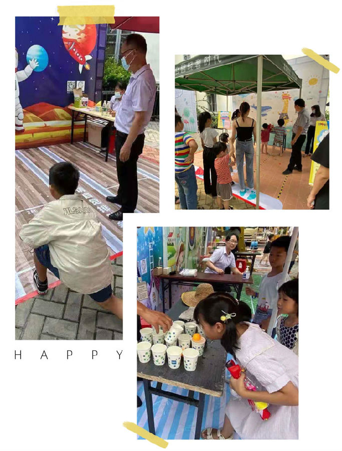 活动当天天气热得仿佛像个蒸笼,没有一点风,连空气都是热烘烘的,人一动就浑身冒汗,然而抵挡不了小朋友们来游乐的心,小朋友们早早就来到活动现场,先在由树木样式组成的寓意“快乐健康成长”背景板留下了彩色的快乐手印,然后领取游戏印花卡,在各自喜欢的游戏点自觉的排起了队伍,其中最受欢迎的是“小弓箭手”游戏点,早已经排起了一条小长龙焦急地等待游戏的开始。游戏一开始,孩子轻轻地接过弓和箭,紧接着长舒一口气,摆好姿势、拉满,瞄准方向,“砰”一声,当箭落到了靶心那一刻,孩子内心的激动再也无法掩饰了,兴奋得跳了起来,马上显摆出胜利的姿势,笑嘻嘻地领取小礼品后进入下个游戏点游玩。