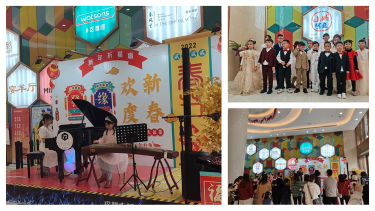发布日期:2022年01月26日2022年1月26日下午,在瑆耀广场A区大堂直播厅的舞台,艺海琴行的老师和学员们齐聚一堂,举办了一场音乐会,奏响欢乐童年美妙乐章。