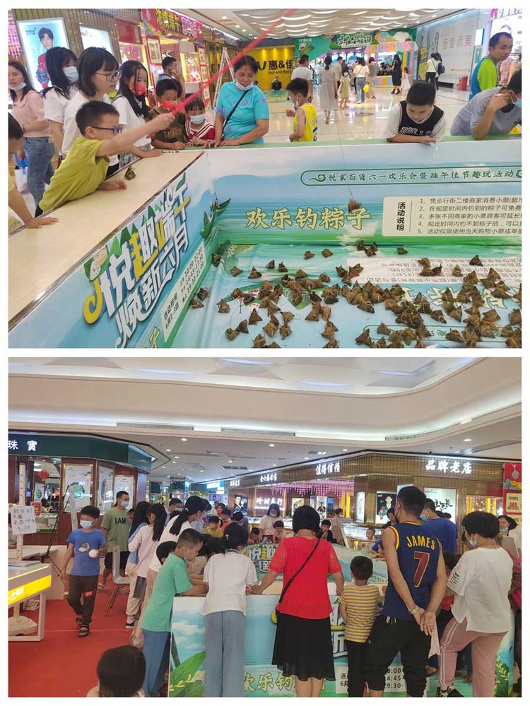 本次活动主要以钓粽子、射五毒为主;在指定的范围内用钓竿进行粽子的垂钓,在规定的时间内钓得一定数量的粽子即可视为客户所得,可直接领走。活动既有传统性与创新性,又有趣味性与亲子性,吸引了不少家长带着小朋友前来了解活动细则,尔后带着小票纷纷前来参与钓粽子、射五毒赢奖品的活动,参与活动的积极性很高。