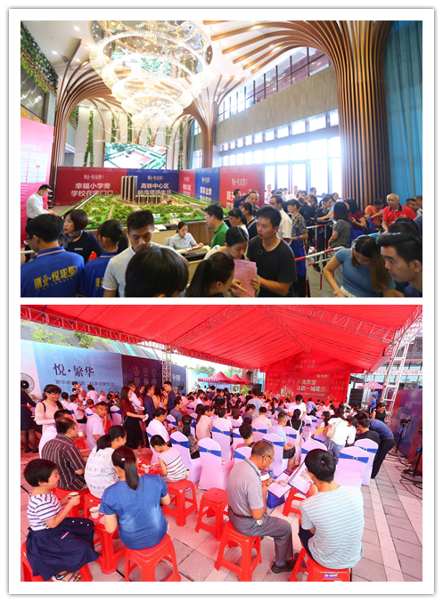 客户盛情胜似三伏天,早上八点,距离预选房登记开始还有两个小时,还没到通知签到时间就已经在腾业·悦珑郡销售中心门外等侯进场,现场工作人员也各就其位,紧锣密鼓为客户做好一切会场准备。随着客户的陆续进场,红帐篷内的气氛变得更加热烈,离开始时间越来越近,客户满脸笑容地观赏台上表演,一边等待主持人宣读自己的进场号码。进场的客户竞相选取自己心仪已久的房号,在现场工作人员的引导下,顺利完成了预选登记,最后拿着悦珑郡定制的金钞载乐而归。在各兄弟部门的鼎力协助下,历时一个半小时,腾业·悦珑郡首批预选房登记活动完满结束!