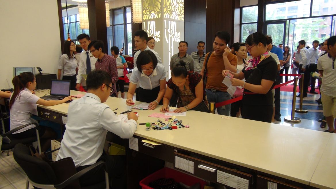 2015年06月07日6月6日,悦景康城40幢商品楼盛大发售,开盘当日即售七成,继续保持旺销的好势头。发售当日,销售中心早就被客户围得水泄不通,纷纷排队抢购心仪的楼房。在选购中,客户专...