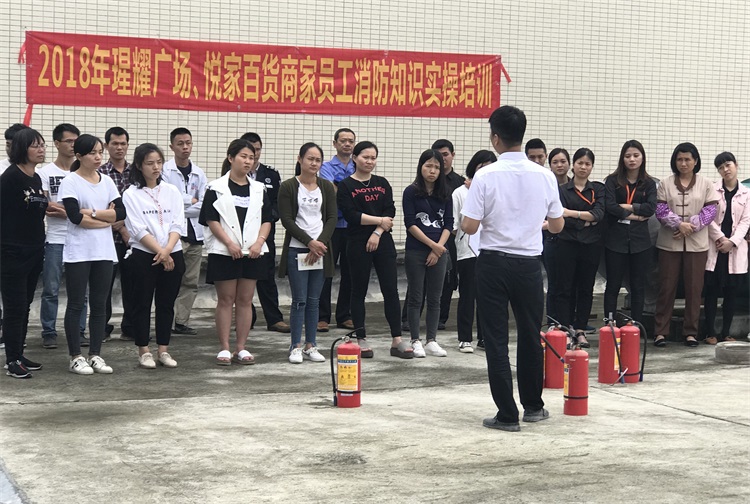 本次全员消防安全培训由瑆耀广场维护员领班唐智初次为商家员工进行了消防安全知识培训,并由悦家百货维护员领班刘天文协助现场工作,从日常防火检查工作知识,到消防器具的使用方法,一一为大家讲解与演示,补充了部分商家员工在消防安全上缺乏的必备知识,起到良好的效果。